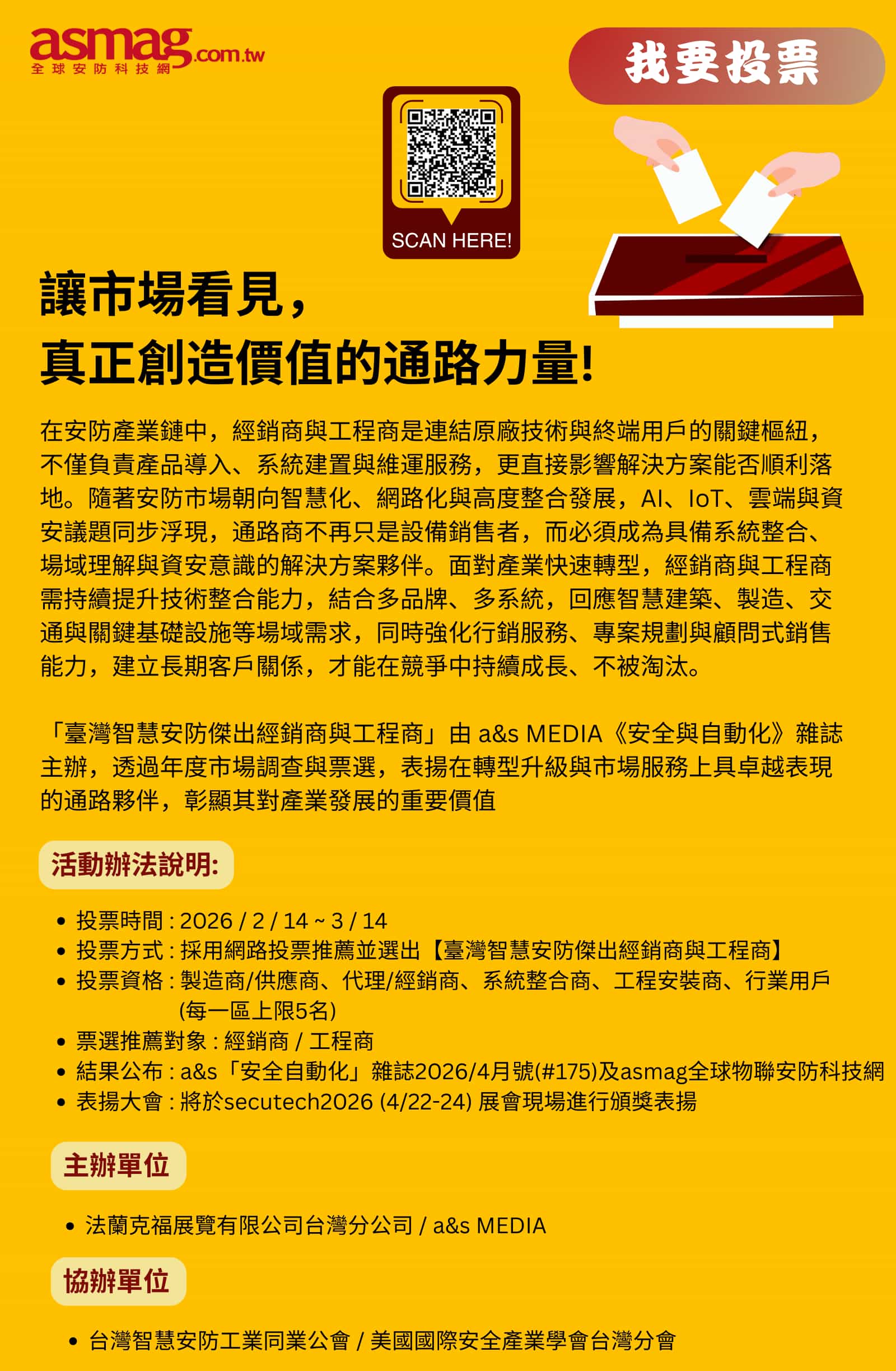 展覽日期 : 2026年4月22~24日展覽地點 : 台北南港展覽館1館 1F展覽官網 : https://secutech.tw.messefrankfurt.com/taipei/zh-tw.html參觀洽詢 : 潘小姐 02-87291087 Yoyo.pan@taiwan.messefrankfurt.com
